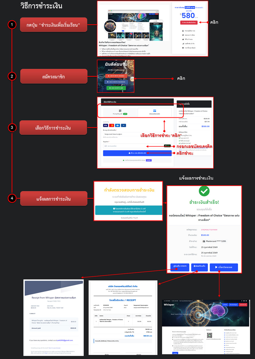 แสดงวิธีและช่องทางการชำระเงินที่รองรับ